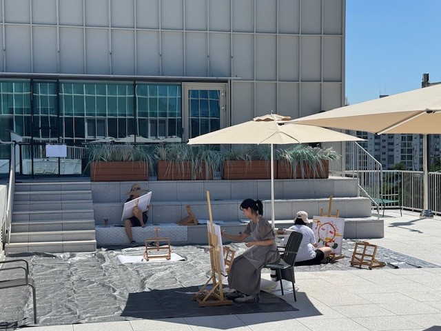 시민들이 직접 적은 개관 1주년 축하 메시지를 전시한 ‘동천 축복길’(동천도서관 야외 계단 전시)을 시작으로 용인문화재단과 협력해 진행한 ‘도서관 테라스에서 그림 그리기’ 결과물 전시가 진행됐다.
