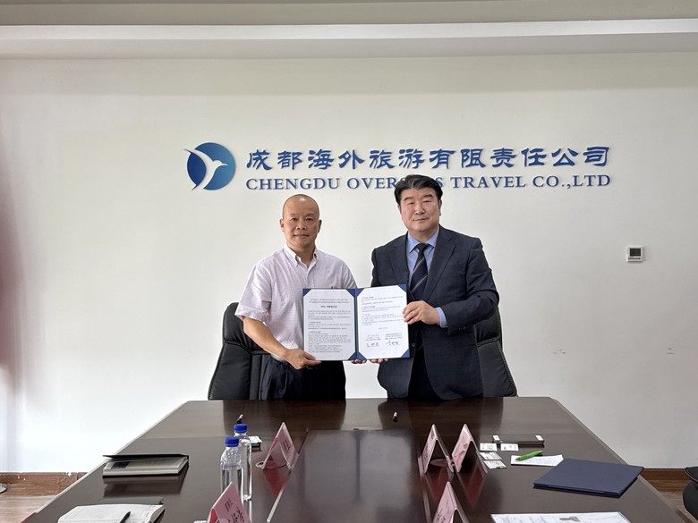 | ▲청두해외여유유한책임공사 MOU(왼쪽부터 리쭈하오 李杼浩 동사장, 조원용 경기관광공사 사장).[사진=경기관광공사] |