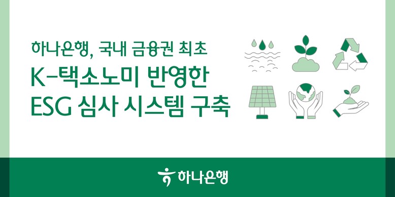 하나은행 ESG기획부 관계자는 "K-택소노미를 반영한 ‘ESG 금융 심사 시스템’ 구축으로 녹색금융에 대한 내부 관리 기준이 보다 명확해졌다"며, "고도화된 ESG 금융 시스템을 기반으로 녹색경제활동에 대한 체계적 금융 지원을 지속적으로 확대하겠다"고 밝혔다.