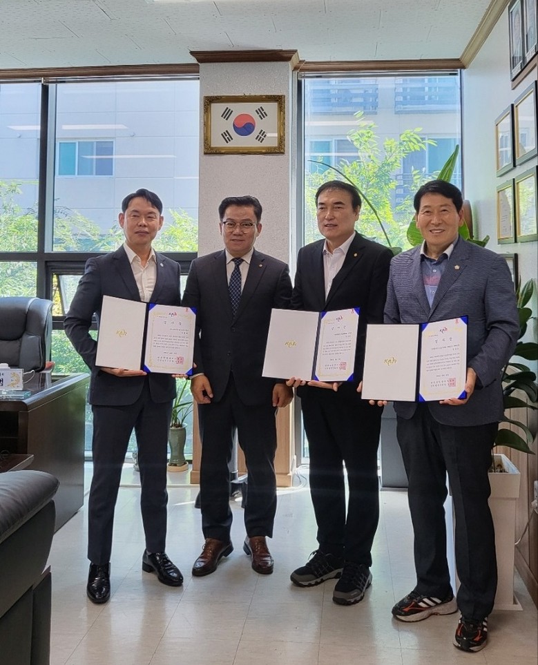 | ▲ 왼쪽부터 임춘원 인천시의원, 김영범 회장, 전유형 남동구의원, 전용호 남동구의원 |