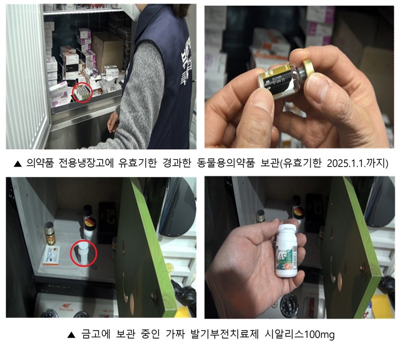 주요 위반사례로, '가' 동물용의약품 도매상은 지난 2020년부터 최근까지 5년 동안 소염진통제 등 동물용 의약품 14종을 의약품공급자가 아닌 동물병원으로부터 94회에 걸쳐 2억 7천927만 3천 원 상당 구매해 시중의 동물병원 등에 판매하다가 적발됐다.