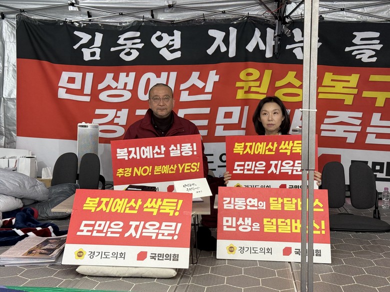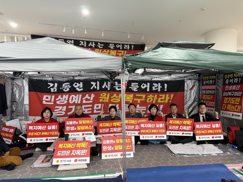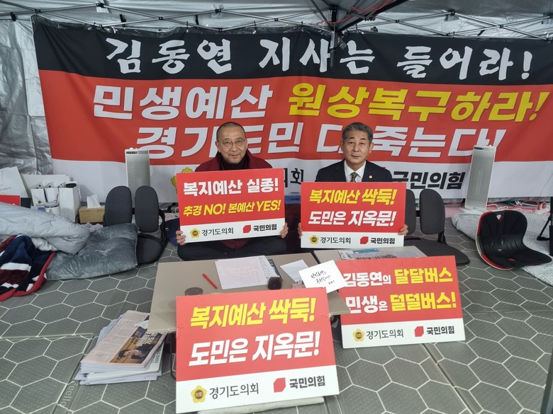 백현종 대표의원은 “지역을 불문하고 많은 분들이 관심 가져주셔서 힘이 난다”며 “진심 담긴 격려와 지지에 힘입어 ‘이증도감(李增道減·이재명표 예산은 증액, 도민 예산은 삭감)’ 행태로 경기도를 망친 김동연 지사에 대한 규탄과 함께 ‘예산 농간’을 바로잡고, 무능한 정무.협치 라인을 ‘전원 파면’하라는 우리의 요구가 관철될 때까지 투쟁하겠다”고 밝혔다.