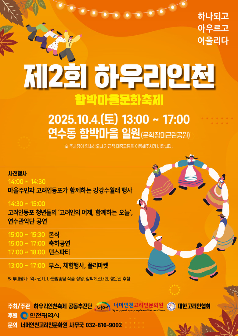 또한 ▲고려인 동포 전통의상과 음식 체험, ▲이주역사 전시 ‘함박마을의 과거와 현재’ 등 다채로운 체험·전시 프로그램이 마련돼, 주민들과 고려인 동포가 함께 어우러지고, 세대를 아우르는 문화 교류의 기회를 제공한다.