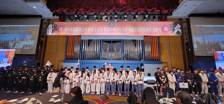 [대구=세계타임즈 = 이채봉 기자] 세계종합무도협회가 손광석 총재 취임식과 함께 마스터 천공컵 세계종합무도대회 선포식을 가졌다. 500여 명의 내 외빈이 참석한 가운데 해외 각국에서 축전을 보내왔다.
