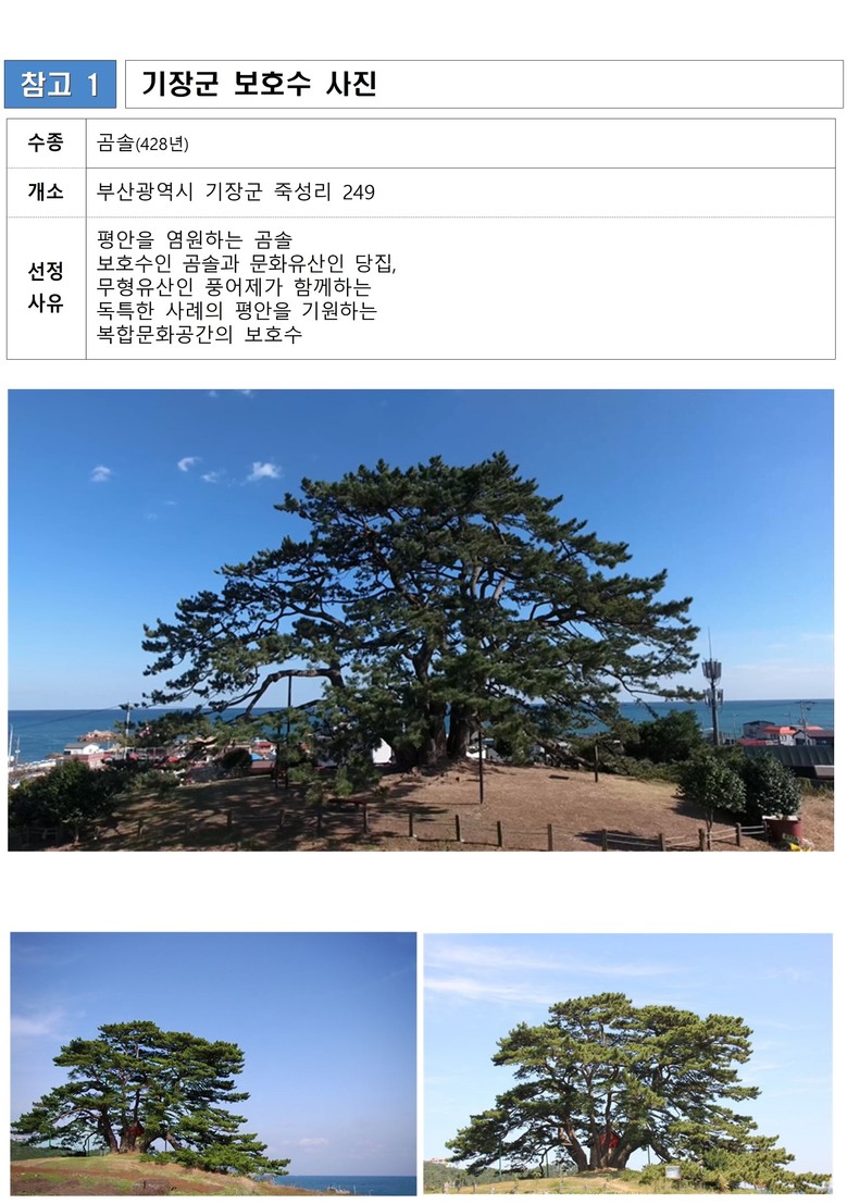 기장 죽성리 곰솔은 오랜 세월 동안 지역 주민들의 평안을 기원하며 자리해 온 나무로, 서류심사, 온라인 투표, 평가위원 현장 심사를 거쳐 11개 시도에서 신청한 46주의 보호수 중 이번 영예를 안았다.