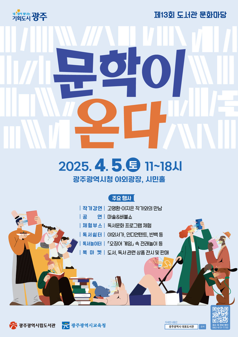 광주광역시립도서관(무등‧사직‧산수)과 광주광역시교육청은 오는 4월 5일 오전 11시부터 오후 6시까지 시청에서 ‘제13회 도서관 문화마당’을 개최한다.