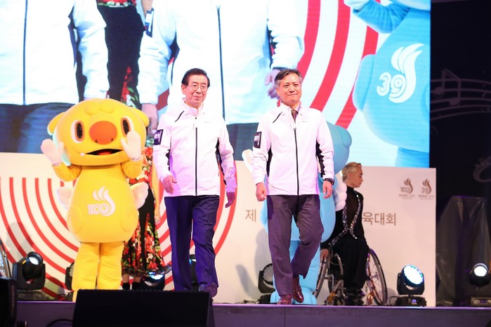 서울특별시체육회(회장 박원순)가 26일 저녁 7시 서울광장에서 열린 제100회 전국체육대회 및 제39회 전국장애인체육대회 서울시 선수단 출정식에서 선수단복을 공개했다.