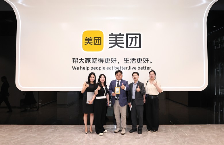| ▲경기관광공사-메이퇀 본사 방문 기념촬영 모습(왼쪽부터 메이퇀 양칭 매니저, 쨔오옌 총경리, 경기관광공사 강동한 실장, 윤문희 차장, 경기관광공사 상하이 소장).[사진=경기관광공사] |
