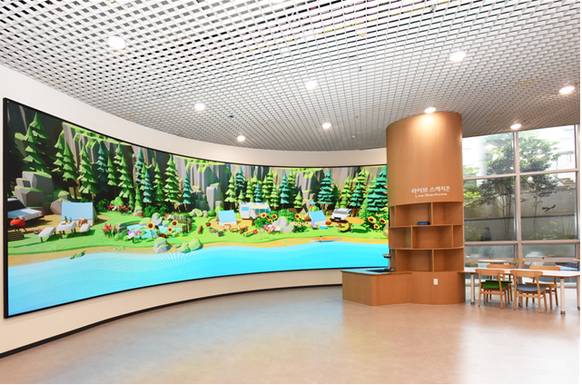 ◈ ▲1층에는 어린이도서관, 로비 쉼터, 수유실 ▲지하 1층에는 한마당홀, 모션인식체험관, 라이브스케치존, 야외휴게공간, 외부 쉼터 등 아동친화공간이 조성돼