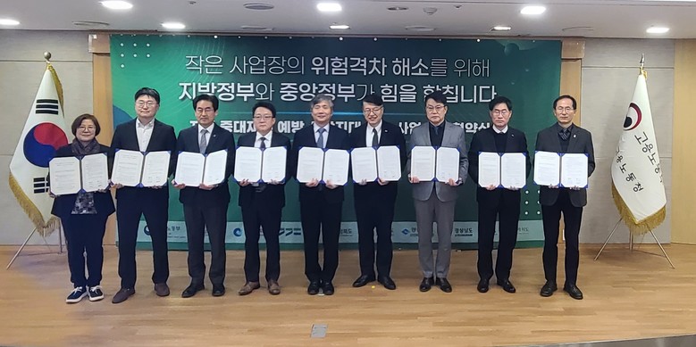 이날 협약식에는 충북도(한국표준협회 컨소시엄)를 비롯해 공모사업에 선정된 8개 광역지자체* 및 운영기관 등 50여 명이 참여했으며 충북도는 총 14억 원을 투입하여「충북 중대재해 사각지대 해소 및 3중 안전 방호망 구축 사업」을 본격적으로 추진한다.