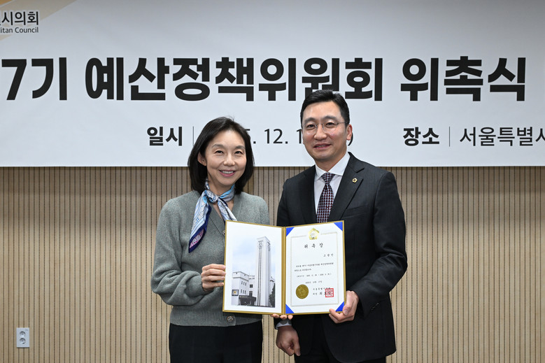 [서울 세계타임즈=이장성 기자] 서울시의회의 예산·결산 및 지방재정 관련 정책 연구를 효율적으로 지원하기 위한 ‘서울특별시의회 제7기 예산정책위원회’가 공식 출범했다. 서울시의회는 지난 17일 시의회 별관 제1대회의실에서 위촉식 및 제1차 전체회의를 열어 위원장에 신복자 의원(국민의힘, 동대문4)을 선출하고, 부위원장에 고광민 의원(국민의힘, 서초3), 김필두 위원(자치경영컨설팅 연구사업단장)을 선임했다고 밝혔다.