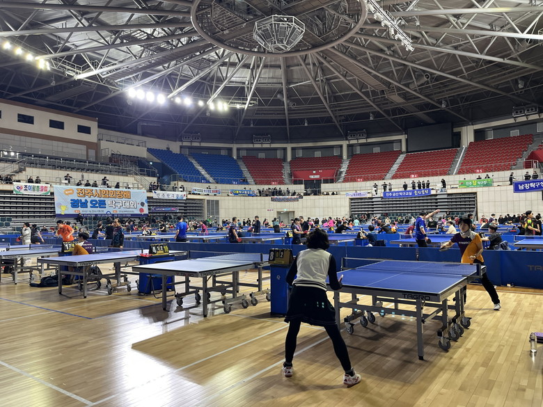 [진주시 세계타임즈=최성룡 기자] ‘제29회 진주시협회장배 경남 오픈탁구대회’가 지난 22일 진주실내체육관에서 경남지역 450여 명의 선수 및 관계자들이 참가한 가운데 성황리에 개최됐다.