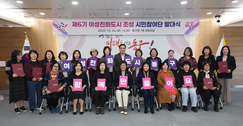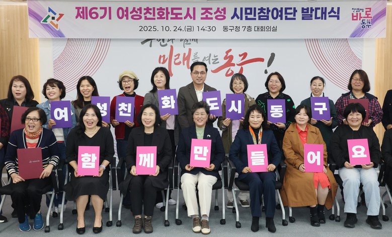 박희조 동구청장은 “시민참여단 한 분 한 분이 동구의 변화를 이끌어가는 주체이자 실천의 주인공”이라며 “현장의 다양한 목소리가 구정에 반영될 수 있도록 적극 지원하고, 모두가 안전하고 존중받는 성평등 도시를 만들어가겠다”고 말했다.