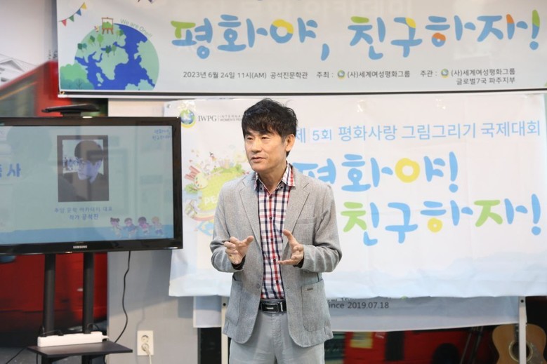 [세계타임즈 백진욱 기자] ㈔세계여성평화그룹 파주지부(IWPG, 지부장 최재순)가 ‘제5회 평화사랑 그림그리기 국제대회’ 예선전 시상식을 6월 24일 오전 11시 수상자 학생, 학부모 등 40여명이 참석한 가운데 파주 공석진문학관에서 개최했다.