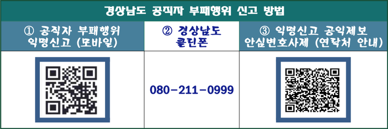 배종궐 경상남도 감사위원장은 “도민의 기대치에 부응하는 실질적인 감사가 될 수 있도록 노력하겠다”며, “공직사회 부패를 근절하기 위해 적극적인 신고와 제보를 당부드린다”고 밝혔다.