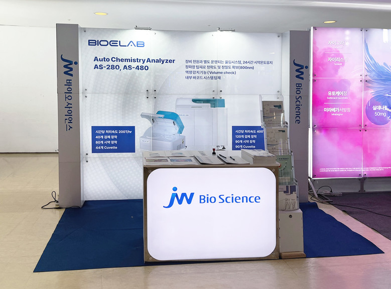 JW바이오사이언스는 지난 13일(일) 서울 스위스 그랜드 호텔에서 열린 대한개원의협의회 ‘제34차 추계 연수교육 학술세미나’에 참가해 올해 국내 공급을 시작한 바이오이랩(BIO E-LAB)의 전자동 생화학 분석 장비 ‘AS-280’과 ‘AS-480’ 2종을 전시하는 한편, JW바이오사이언스가 자체 개발한 일반 시약 및 특수 시약 제품을 홍보하는 시간을 가졌다.