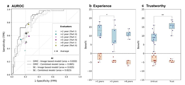 의사의 경력에 따른 분석에서는 경력 2년 미만 저경력 집단에서 11.6%의 가장 큰 정확도 향상이 나타났고, 경력 8년 이상 고경력 집단에서도 5.8%의 향상이 확인됐다. 또한 사전 설문을 통해 AI에 대한 신뢰도가 높다고 분류된 집단에서 AI 진단 보조의 긍정적 효과가 더 크게 나타났으며, 신뢰도가 높다고 해서 AI의 잘못된 예측을 무비판적으로 따르는 경향이 증가하지는 않았다.