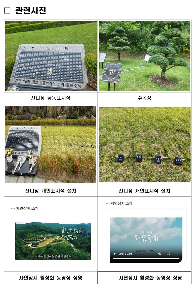 울산시 관계자는 “작은 변화일 수 있으나 다회용 봉안함 도입은 의미 있는 첫걸음”이라며, “1개월간의 시범 운영 결과를 분석해 정식 도입 여부를 신중히 검토할 계획”이라고 말했다.