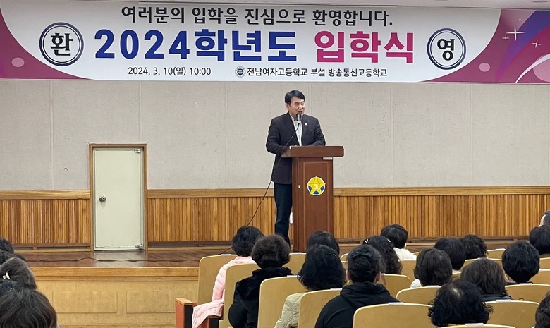 전남여고부설방송통신고 조병현 교장은 “교정의 홍매와 백매가 활짝 피어 이번 신입생들의 입학을 반겨주고 있다”며 “우리 학교 구성원들 모두가 갖가지 사연으로 제때 못다 이룬 여러분들의 고등학교 입학을 진심으로 환영한다”고 말했다.