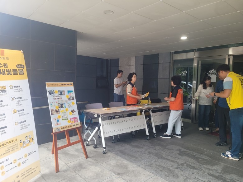 [수원시 세계타임즈=송민수 기자] 수원시 영통구청(영통구청장 장수석)은 지난 15일부터 1주일간 광교1동과 원천동 지역사회보장협의체와 협력하여 '수원새빛돌봄(누구나)' 사업을 홍보했다.