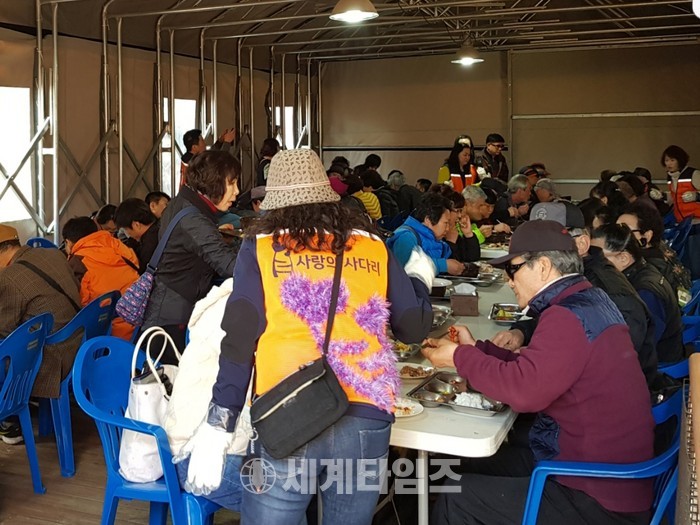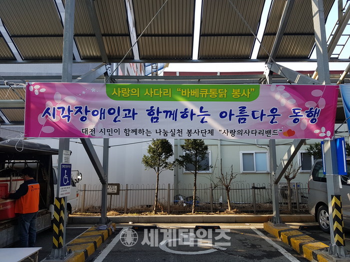[대전=세계타임즈 이장성 기자] 회원들의 자발적인 후원과 참여로 따뜻한 나눔을 실천하는 대전광역시 봉사 단체 사랑의 사다리 밴드(리더 이정제)는 23일 오전 9시~오후1시, 대전시립산성종합복지관(관장 이상용)에서 시각장애인 500명에게 바베큐통닭 봉사로 따뜻한 이웃사랑을 전했다.