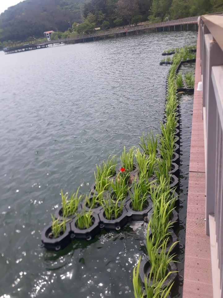 수상 태양광과 정화기능 생명라인 설치 모습