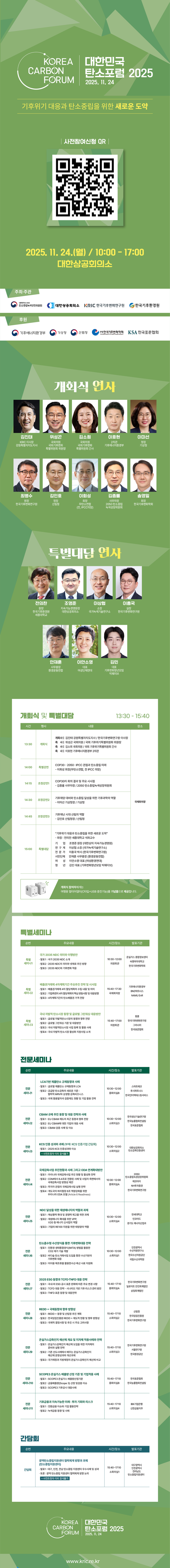 이번 포럼은 기후에너지환경부 출범과 더불어 새롭게 수립된 2035년 국가 온실가스감축목표를 공유하고 정책 방향성을 논의하며, 기업의 효율적 대응방안을 모색하기 위하여 개최된다. ▲기조연설 및 초청 강연 ▲14개의 세미나 ▲전문가 미팅 등 역대 최대 규모로 개최될 예정이다.