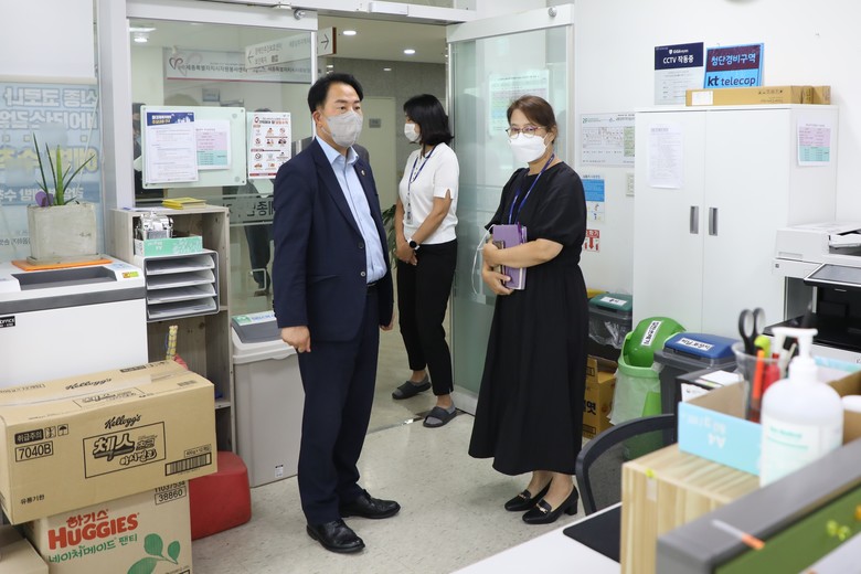 [세종 세계타임즈=이채봉 기자] 세종특별자치시의회 상병헌 의장은 22일 종촌종합복지센터를 격려 방문한 자리에서 입주 시설 및 기관 현황을 청취하고 민간 위탁 사회복지시설 관계자를 만나 운영상 애로사항 등을 논의했다.