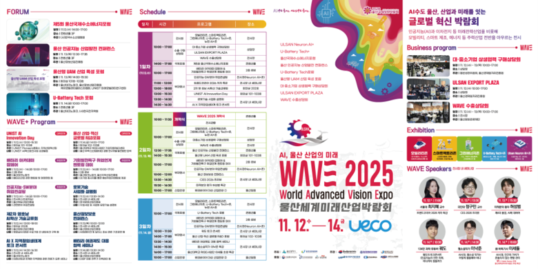 인공지능, 이동수단 등 미래 산업 분야 혁신 기술 한자리 [울산 세계타임즈=이호근 기자] 울산시는 11월 12일부터 14일까지 유에코(UECO)에서 ‘인공지능(AI), 울산 산업의 미래’를 주제로 ‘웨이브(WAVE) 2025 울산세계미래산업박람회’를 개최한다고 밝혔다.