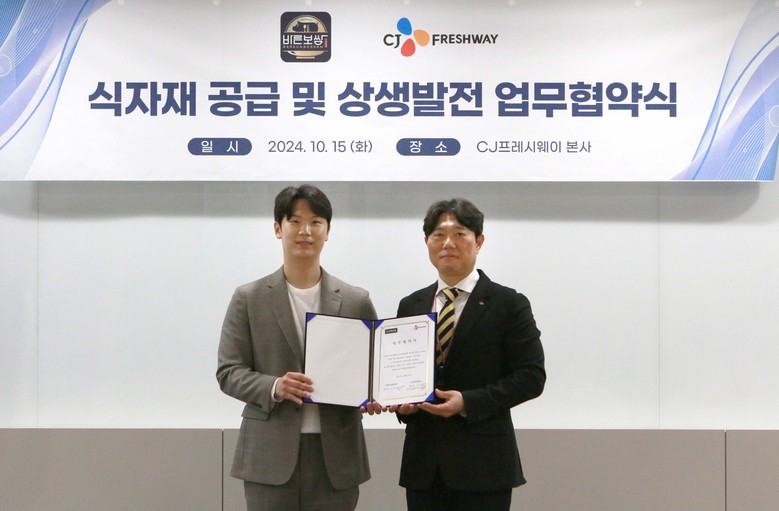 CJ프레시웨이 임종욱 FC사업담당은 “외식 경기 침체 등 어려운 상황 속에서 외식 사장님들의 고민을 덜어줄 수 있는 솔루션들을 지속적으로 개발하고 있다”며, “업계 최고 수준의 상품·물류 인프라를 적극 활용한 솔루션들을 통해 바른보쌈1990과 동반성장을 이뤄내겠다”고 말했다.
