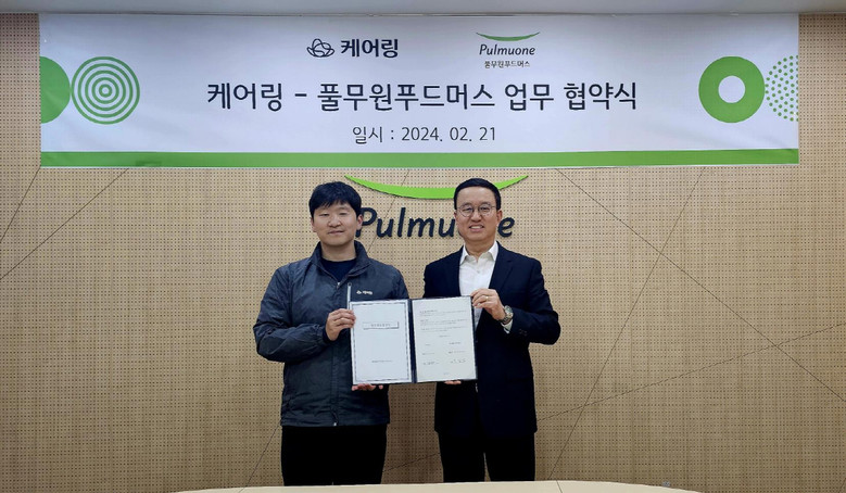 풀무원푸드머스 천영훈대표는 “케어링과의 업무협약을 통해 풀무원의 시니어 케어푸드를 공급하게 되어 기쁘게 생각한다”며 “초고령사회로 빠르게 변화하는 가운데 풀무원푸드머스는 시니어 브랜드 ‘풀스케어’를 통해 어르신들의 건강하고 균형 잡힌 먹거리 및 영양개선을 위해 최선의 노력을 다하겠다”고 말했다.