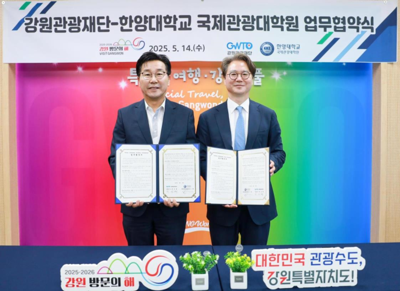 [강원도 세계타임즈=김민석 기자] 강원관광재단(대표이사 최성현, 이하 ‘재단’)과 한양대학교 국제관광대학원(원장 이훈)이 산학협력을 통한 관광 전문인력 양성 및 상호 교류 증진에 나선다.