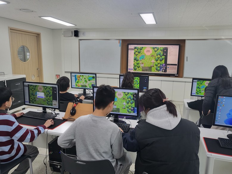 메타버스 전시회에 입장하면 학생들이 음악 시간에 직접 작사하고 녹음한 음악이 흐르고 봄, 여름, 가을, 겨울 사계절 테마별로 펼쳐지는 학생들의 그림을 감상할 수 있다. 더불어, 학생들이 즐길 수 있는 눈 피하기 게임, 좀비 피하기 게임 등 다양한 게임을 마련하여 보다 흥미로운 감상이 가능하다.