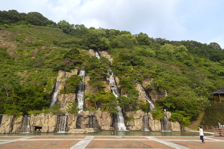 공원 안으로 들어서면 가장 먼저 맨발로 걷는 사람들을 만나게 된다. 황토가 깔린 맨발 산책로는 주민들에게 인기 최고의 장소다. 공원의 계단을 오르면 넓은 잔디마당이 펼쳐지고 그 맞은편에는 시선을 압도하는 인공폭포가 있다. 하얀 물줄기가 쏟아져 내리는 인공폭포는 보고만 있어도 더위가 사라진다. 병목안시민공원은 일제강점기부터 1980년대까지 철도용 자갈을 채취하던 채석장이었고 인공폭포는 채석장의 흔적이다. 지금도 공원 한쪽에는 당시에 사용하던 석재 운반용 객차가 세월의 무게를 감당하며 전시되어 있다.