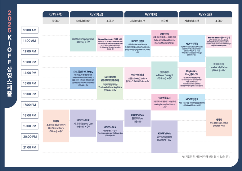 ◈ 6.19. 개막작 <소피아의 상어 이야기>, 6.22. 폐막작은 <바다 호랑이>… 이외에도 ▲관객과의 대화(GV) ▲강연 및 토크쇼 ▲포토존 및 이벤트 공간(부스) 운영 등