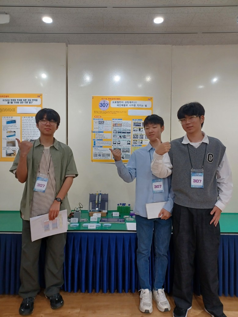 학생들은 과일에 포함된 효소를 활용해 안경 렌즈에 묻은 오염물을 분해하는 친환경 코팅제를 탐구해 높은 평가를 받았다.