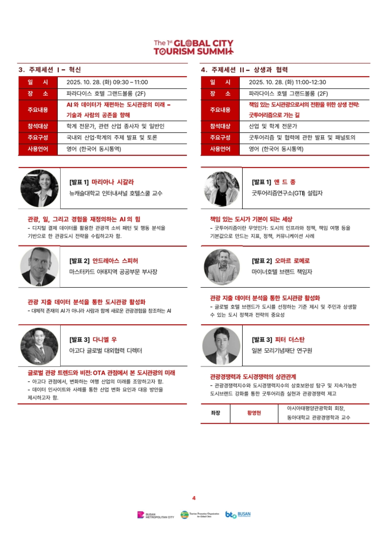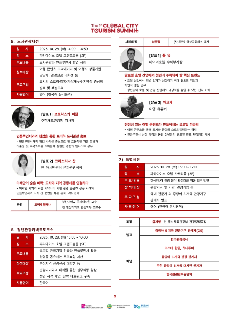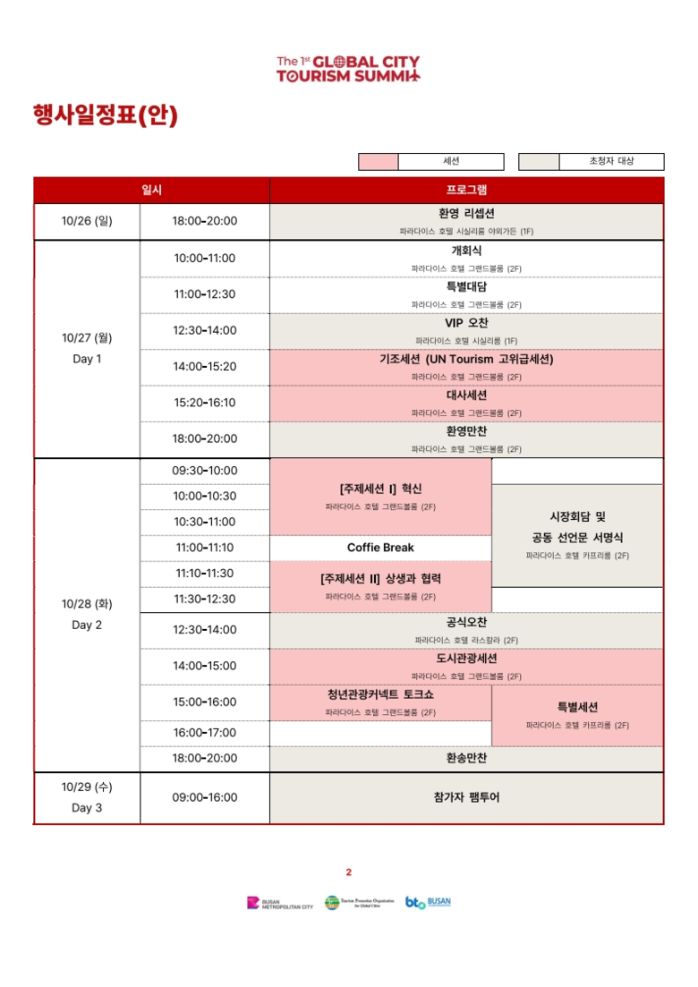 정부, 국제기구, 도시 관광정책 관계자, 학계 및 업계 전문가 등 다양한 주체가 참여하는 이번 행사는 부산이 국제 관광산업의 중심지이자 글로벌 도시 간 협력의 허브로 자리매김하는 계기가 될 것이다.