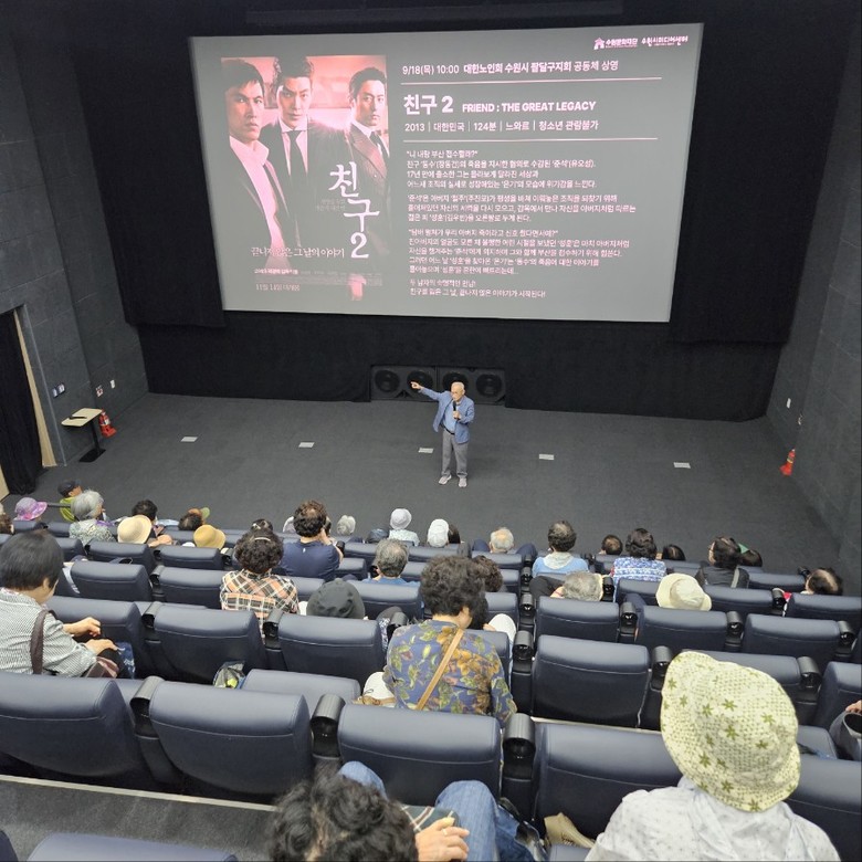 [수원시 세계타임즈=송민수 기자] 수원시 팔달구(이상균 구청장)는 대한노인회 팔달구지회(이병학 회장)와 함께 지난 9월 18일 관내 경로당 회원 및 노인일자리 참여 어르신을 대상으로 ‘팔달 시네마’ 영화 관람 행사를 진행했다.