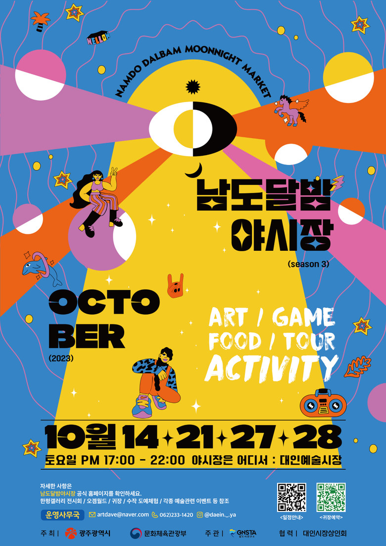 남도달밤야시장 시즌3은 기존 ▲예술형 야시장 ▲관광형 야시장 ▲게임형 야시장의 콘셉트를 한층 강화한다. 국내·외 관광객들이 즐길 수 있는 공연, 예술·전시, 스마트관광게임, 문화예술체험 등 다양한 프로그램을 선사할 예정이다.