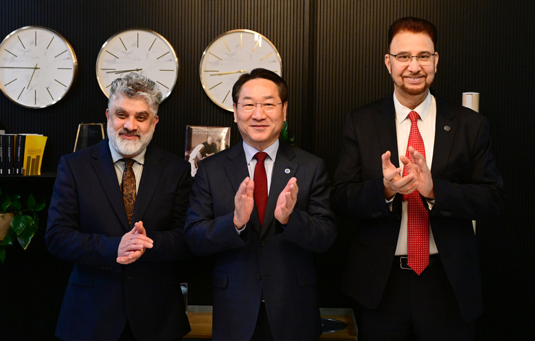 | ▲ 왼쪽부터 파리드 칸 박사, 유정복 인천시장, 아프잘 칸 맨체스터 하원의원 |