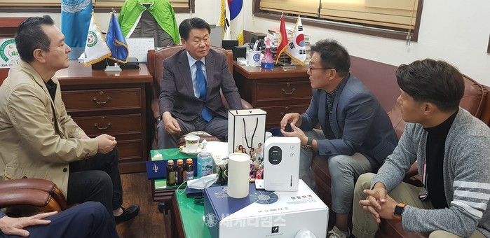 [세계타임즈 이채봉 기자]금일 11시 아시아사랑나눔 사무실에서 ㈜네이처페어리 대표 박재석과 (사)아시아사랑나눔 총재 김종구는 홍보대사 강승모와 함께 원격바이러스살균기 기증 및 업무협약식을 진행하였다.