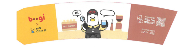 하이오커피는 ‘부기’를 활용한 전용 컵홀더(컵슬리브)를 제작해 어제(16일)부터 전국 매장에서 배포 중이다.