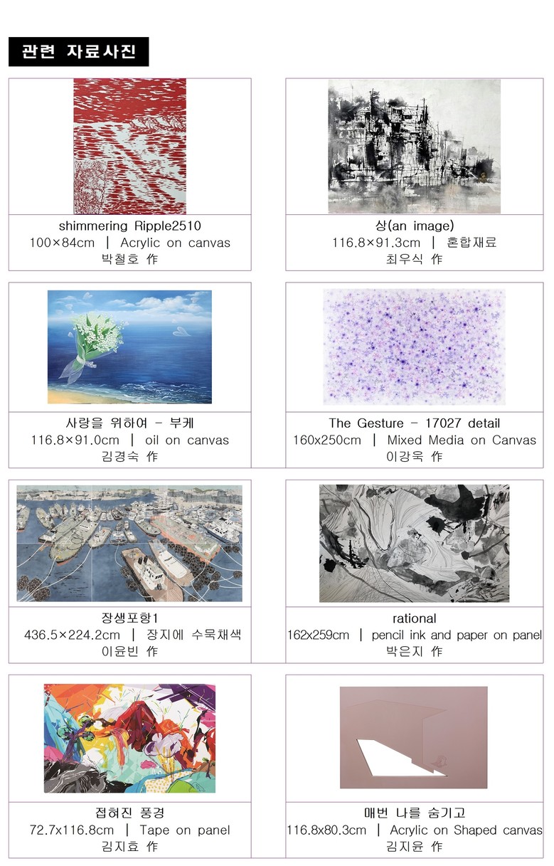 또 젊은 작가로는 울산문화예술회관의 ‘올해의 작가 개인전’에 선정된 참여 작가 중 이윤빈(한국화), 박은지(서양화), 김지효(서양화), 김지윤(서양화) 작가가 초대됐다.