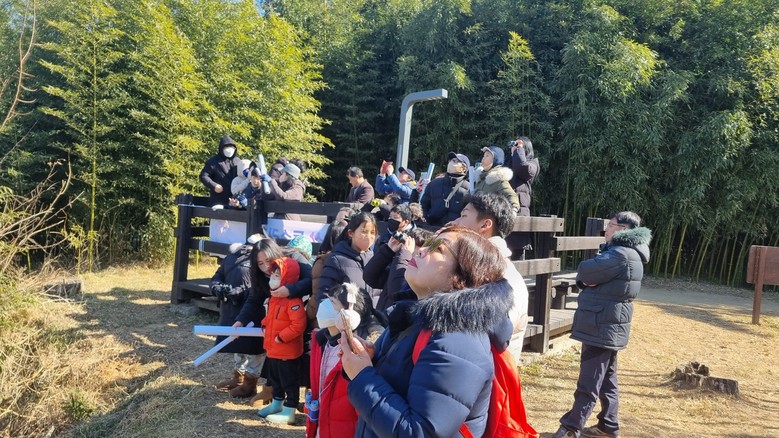 독수리학교 해설사로부터 독수리 생태에 관한 설명을 듣고 독수리 날개옷을 입고 사진 찍기, 나만의 독수리만들기 등 체험 행사도 이어졌다.