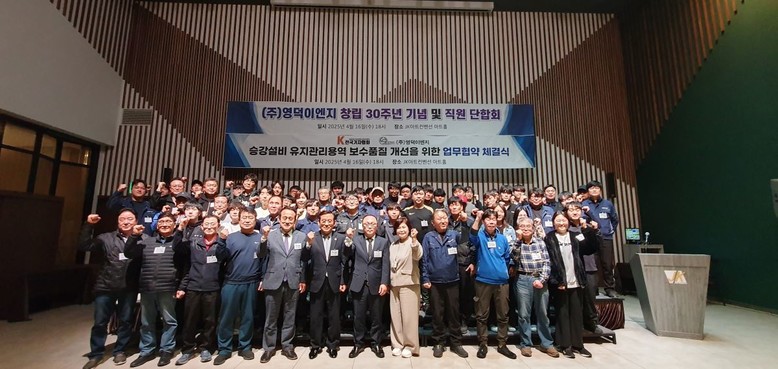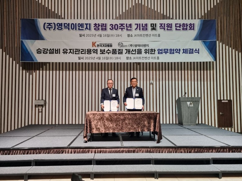 지난 16일 주식회사 영덕이엔지(대표 정금수)가 창립 30주년을 맞아 전국기자협회(회장 민병홍)와 문래동에 있는 JK아트컨벤션 아트홀에서 승강설비 유지관리용역 보수품질 개선을 위한 업무협약 체결식을 갖고 새로운 도약을 하기 위해 기업의 적극적인 경영활동에 들어갔다.