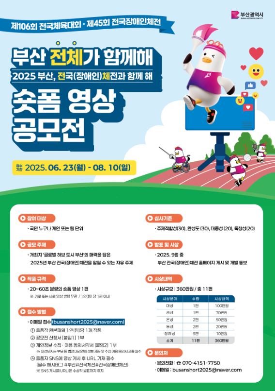 공모전은 '부산 전체가 함께해! 2025년 전국(장애인)체전과 함께해'라는 이름으로 열린다.