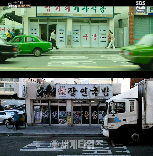 영화 '택시운전사', 송강호 기사식당 '80년대 간판·문·차'로 변신 '화제'