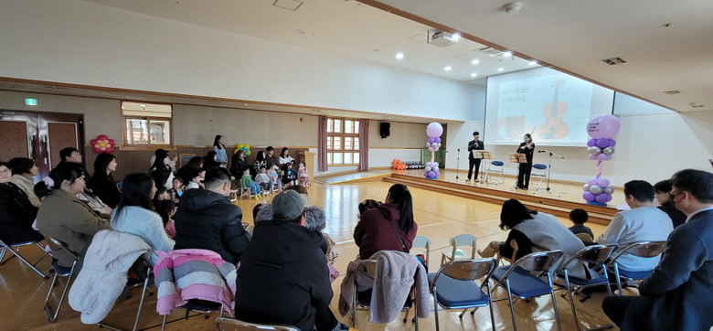 처음 만나는 작은 사회이자 낯선 환경에 첫발을 내딛는 만3세 유아와 학부모에게 편안한 분위기에서 클래식 음악을 들으며 낯선 곳에 쉽게 적응하도록 돕는 특별한 시간이 되었다. 기존의 입학식에서 벗어나 아름다운 선율의 플롯, 바이올린, 피아노로 연주하는 클래식 3중주 음악을 감상하며 떨리고 낯선 입학식이 설레고 감동이 있는 시간이 되었다.