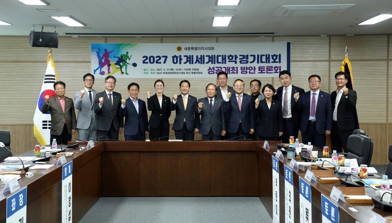 [세종 세계타임즈=이채봉 기자] 세종특별자치시의회(의장 상병헌) 2027 하계세계대학경기대회 추진 특별위원회(위원장 김현미)가 주최·주관한 “2027 하계세계대학경기대회 성공개최 방안 토론회”가 27일 세종특별자치시의회 의정실에서 열렸다.