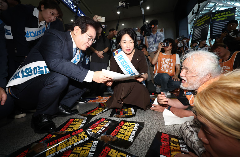 전장연 만난 이재명 대표